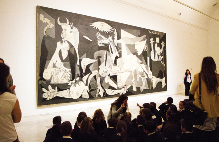 Skoleelevene lytter, peker og kikker opp på det store maleriet på veggen foran dem. Død, fordervelse og forvridde kroppsdeler, en mor med sitt lille barn i armene skriker ut i fortvilelse. Hus i flammer, en skrekkslagen okse og en hest som vrinsker ut all sin angst. Alt skildret i grått, svart og hvitt. “Den spanske […]