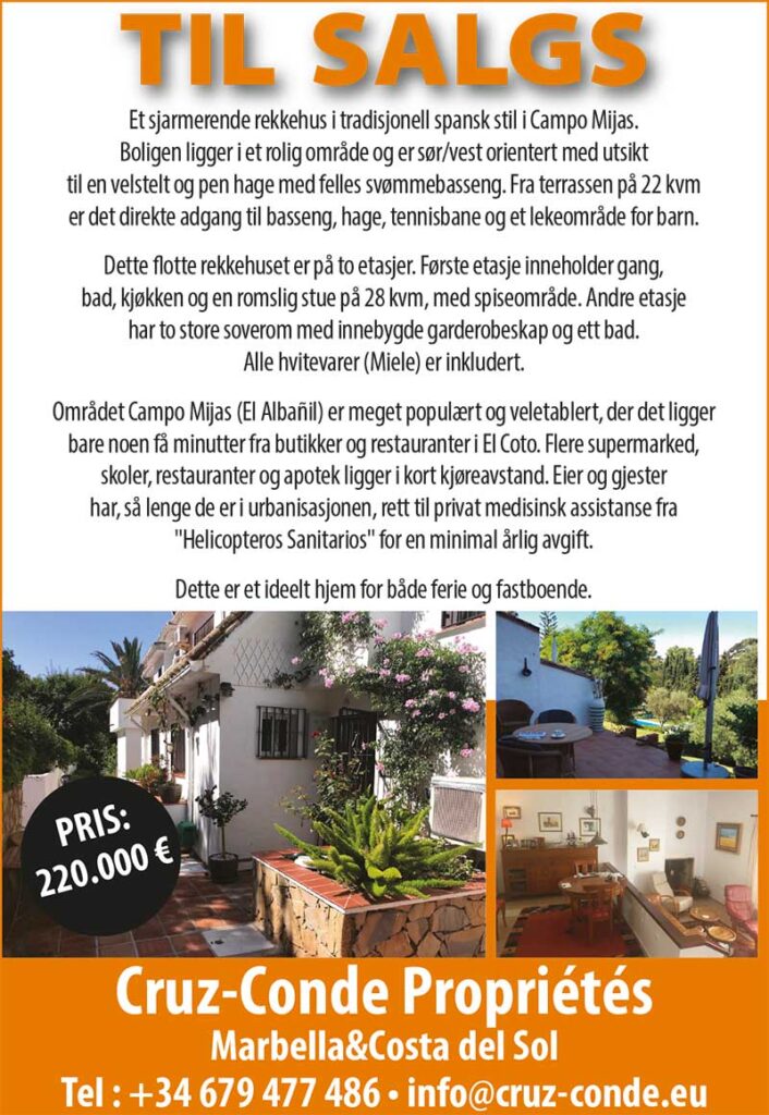Et sjarmerende rekkehus i tradisjonell spansk stil i Campo Mijas Boligen ligger i et rolig område og er sør/vest orientert med utsikt til en velstelt og pen hage med felles svømmebasseng. Fra terrassen på 22 kvm er det direkte adgang til basseng, hage, tennisbane og et lekeområde for barn. Dette flotte rekkehuset er på to […]