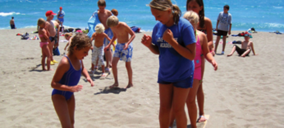 De spreke elevene startet dagen med å gå fra skolen ned til stranden, nesten en times spasertur! På stranden ble elevene delt inn i to lag. Lagene skulle konkurrere innen aktiviteter som skigåing (!) fotball, volleyball, slåball og tennis. Dette er aktiviteter som de fleste liker, og når de kan utføres på stranden i skoletiden, blir det ekstra gøy.