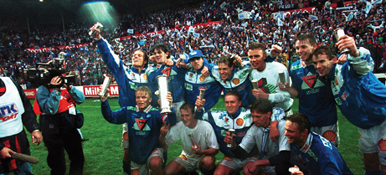 Lykkelige dager da Flaco og Molde FK i 1994 slo FC Lyn og ble Norgesmestre. Foto: Romsdalen Budstikke
