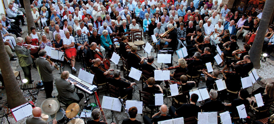 Torsdag 14. oktober fikk vi besøk av Drammen Symfoniorkester og Royal Garden Jazzband. Det ble en uforglemmelig festaften, og skandinaver på kysten kjente øyensynlig sin besøkelsestid, for aldri har det vært så mange besøkende på en konsert på El Campanario, ca. 320 betalende i alt. Vaffel og kaffe var inkludert i billettprisen, og køen foran vaffel- og kaffedisken var lang.