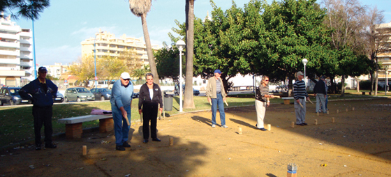 En turgåer som intetanende forviller seg inn i Doña Sofia-parken mellom moskéen og stranden i Fuengirola en onsdag om vinteren mellom kl. 11 og 13, vil oppdage en flokk homo sapiens som er intenst opptatt med å kaste runde trepinner langs bakken på noen oppmerkede, rektangulære grusbaner. Når han kommer nærmere, samtidig som han forsøker å finne ut hva som foregår, vil han se at målet med denne kastingen er å velte ned noen trekubber med kvadratisk tverrsnitt som dels står oppstilt på den korteste streken i oppmerkingen dels står innenfor den ene halvdelen av rektanglet. Han vil også merke seg at de fleste spillerne snakker svensk, men noen av disse viser seg å komme fra Finland. Og innimellom kan han også høre noen norske stemmer. Og den enkeltes engasjement i spillet er det ingen ting å si på, spillerne kommer stadig med kommentarer om spillets gang, ytringer om egne og motpartens prestasjoner og jubelrop når man får et uventet overtak over motparten.