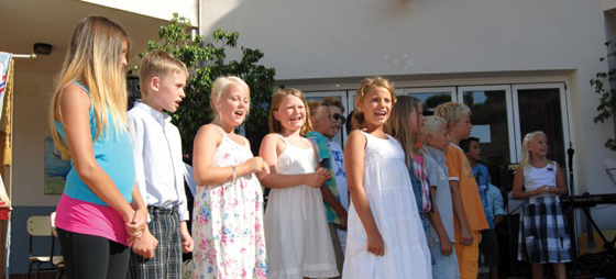 Deretter ble det både allsang og spesielle bidrag fra de ulike klassetrinnene ved skolen. 1. og 2. klassene bidro med spansk sang, mens elevene på tredje og fjerde klasse