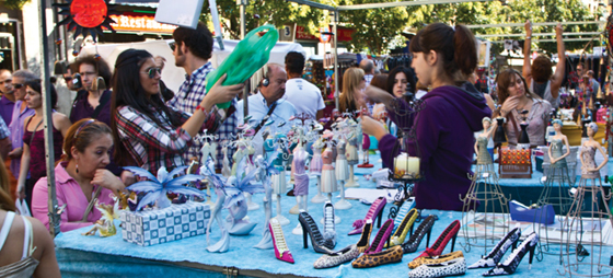 Herfra kan du velge flere ruter, men de fleste foretrekker å gå ned hovedgaten Calle Ribera de Curtidores som er bilfri så lenge markedet pågår, til den krysser gaten Ronda de Toledo. På begge sider av gaten ligger bodene tett i tett. I tillegg må du ta avstikkere inn i tverrgatene, for her finnes det også mange boder. Dessuten er det i disse gatene du finner de etablerte kunstgalleriene, møbel- og antikvitetsforretningene.