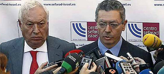 Justisminister Alberto Ruiz-Gallardón (t.h.) og utenriksminister José Manuel García-Margallo forklarer hvordan Spania nå gjør opp regnskapet med de utvandrede jødene.