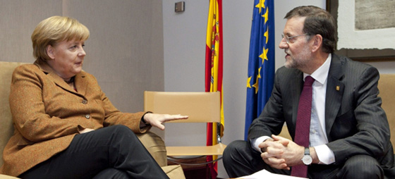 Spanias statsminister, Mariano Rajoy, under møtet med Tysklands kansler, Angela Merkel, i Bruxelles.