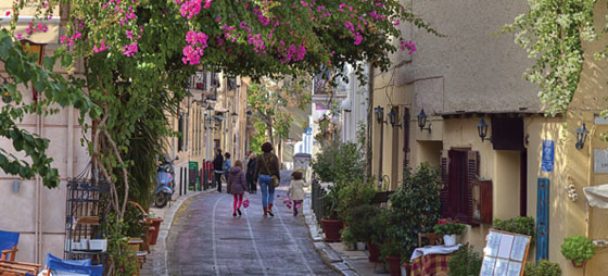Den postkortvakre og gamle bydelen Plaka er Europas største og kanskje eldste bydel, og her kjemper forretningene med tavernaenes border om plassen på de smale og lykkelige, bilfrie gatene.