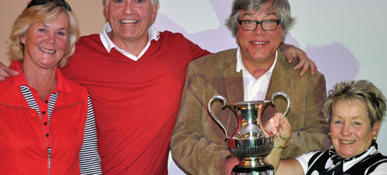 Vinnerne av Sjømannskirkens 9. golfturnering fra venstre: Ruth Rist, Rune Falstad, utdeler av vandrepokal tidligere sjømannsprest Steinar Lindvig, Sylvi Robbins. Svein Hjelle ikke til stede da bildet ble tatt.