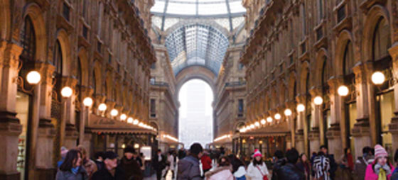 Tilbake på Piazza del Doumo er det mer shopping på aperitivi-menyen. Det er de færreste byer som har et kjøpesenter aller øverst på listen over virkelig store seværdigheter, men det er tilfelle her i Milano. Kjøpesenteret, eller forretningsarkaden om man vil, er oppkalt etter kongeriket Italias første konge, Vittorio Emanuele, og den munner ut og begynner her på plassen