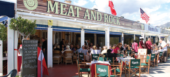 Meat and Rock ligger i Fuengirola havn og holder åpent alle dager – hele dagen mellom kl. 12.00 . 02.00 (kjøkkenet stenger kl. 22.30).