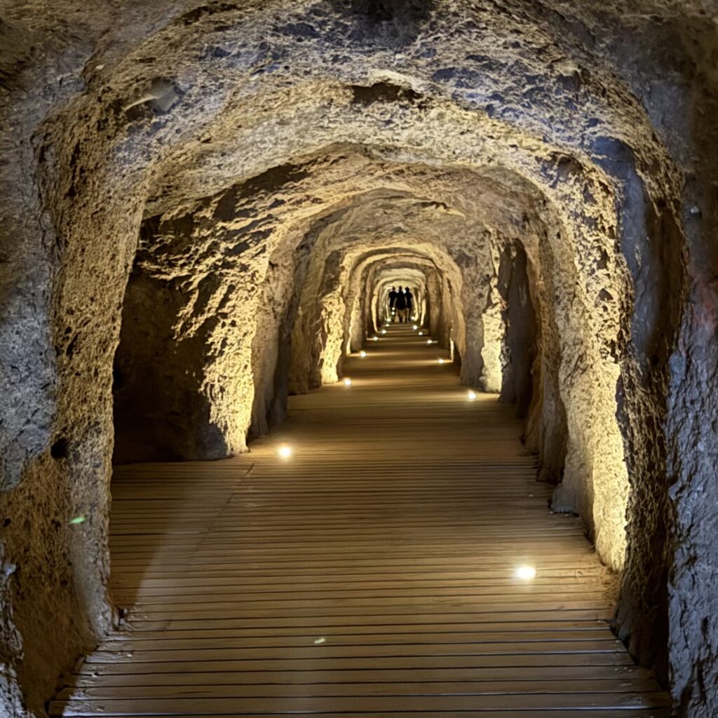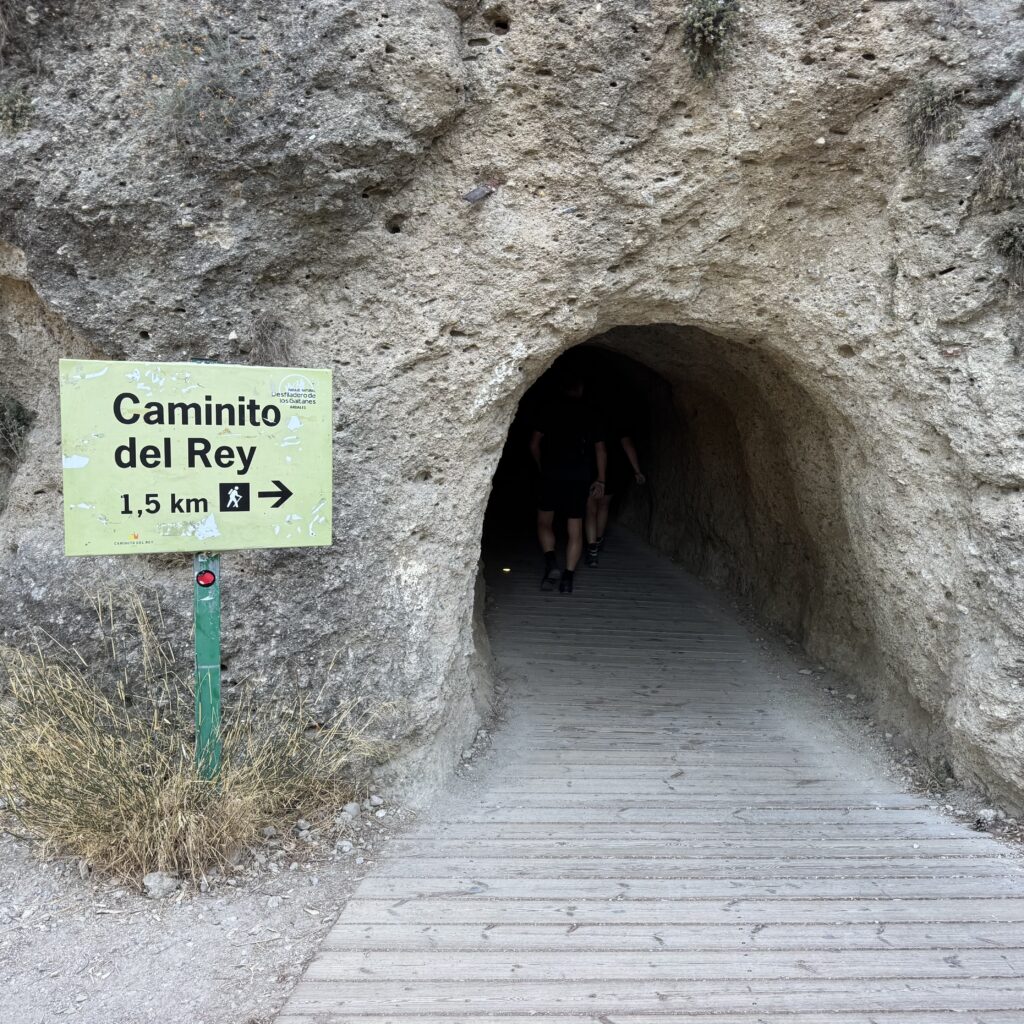 Vi starter med å gå gjennom tunnelen som alle caminitoen-vandrerne tar. Den er godt opplyst, men litt lang, så den passer ikke for folk som lett får klaustrofobi. På slutten av tunnelen går vi til høyre som de andre, men etter noen hundre meter fører en bred sti opp til høyre. Det er den vi skal ta.