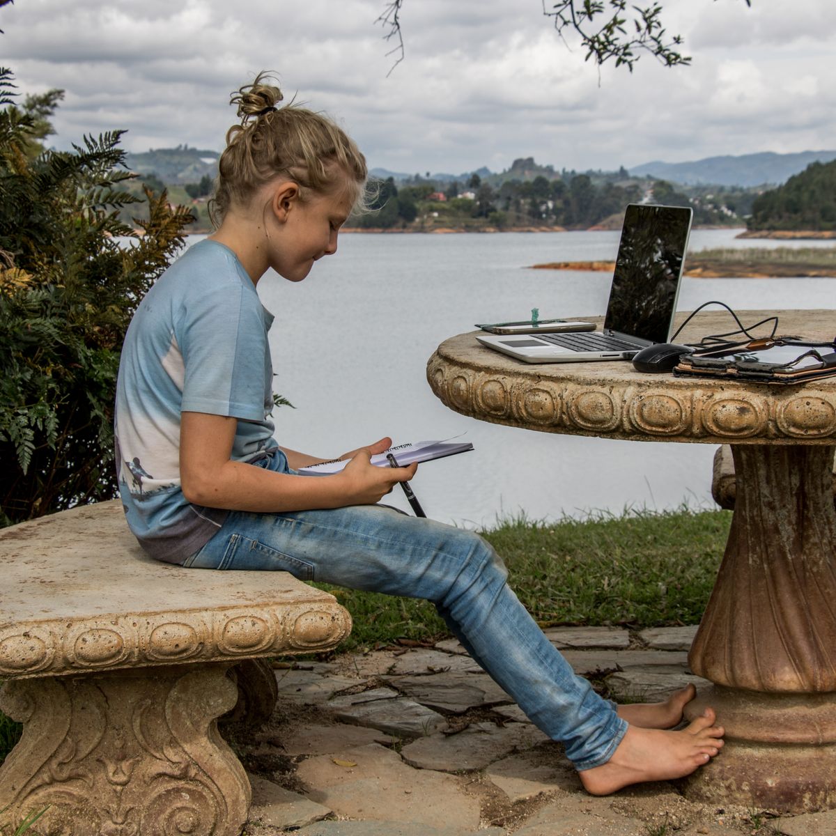 Milles barn, som nå er 10 og 12, gikk på internasjonal skole i Spania og har fulgt engelsk pensum med en engelsktalende lærer da de reiste jorden rundt. Mille og mannen Kristian underviser dem selv, når de er på kortere turer.