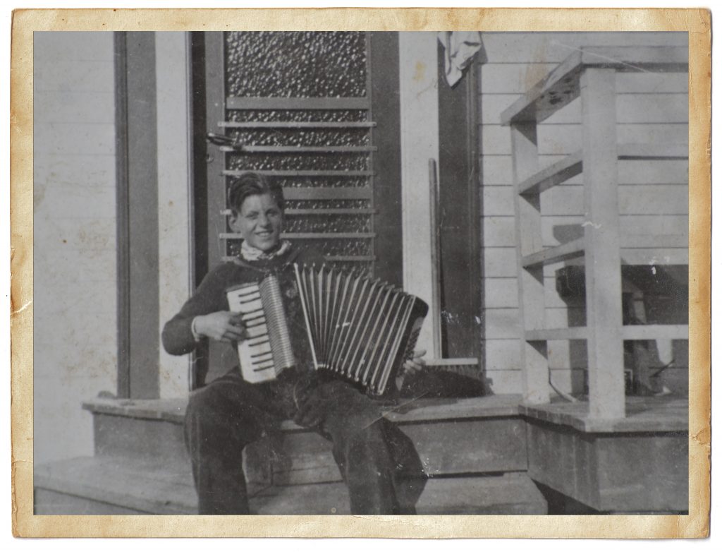 «Det kan jeg fortelle deg! Mens jeg holdt på å grave jord å legge på lasteplanet på min gule lekelastebil rett syd for huset vårt, så jeg noen skygger. Da jeg kikket opp, så jeg to tyske soldater som gikk oppe på jernbanelinjen, for vi var 15 meter fra skinnene. Det var i 1944, så jeg må ha vært tre år gammel.