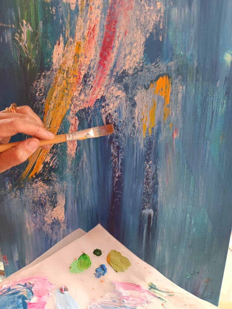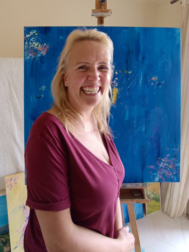 «Jeg vet ikke om det er sommeren i Norge, tiden i Frankrike eller Costa del Sol, men det er veldig mye blått på lerretene mine»