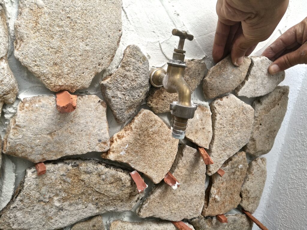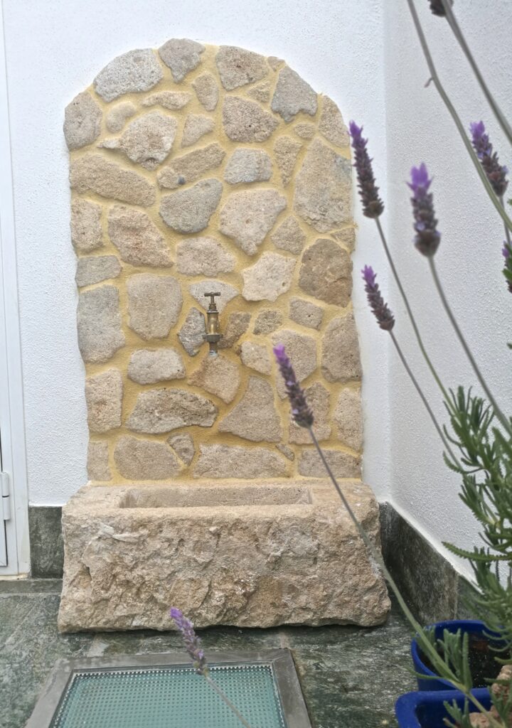 Med en så spennende fortid, var min mann og jeg enige om at fontenen vår måtte gjenspeile denne delen av lokalhistorien. I tillegg til de håndmeislede steintrauene, elsket vi den varme sandfargen på Rondas Tajo kløft. I utgangspunktet var planen å dekke i hvert fall noen av veggene i vårt fremtidige hjem med disse steinene, men siden vi kjøpte en tre-meter bred ruin, kunne vi ikke tillate å miste selv noen få centimeter ved å ‘polstre’ veggene med synlige steiner. Derfor ble en veggfontene i stein løsningen.