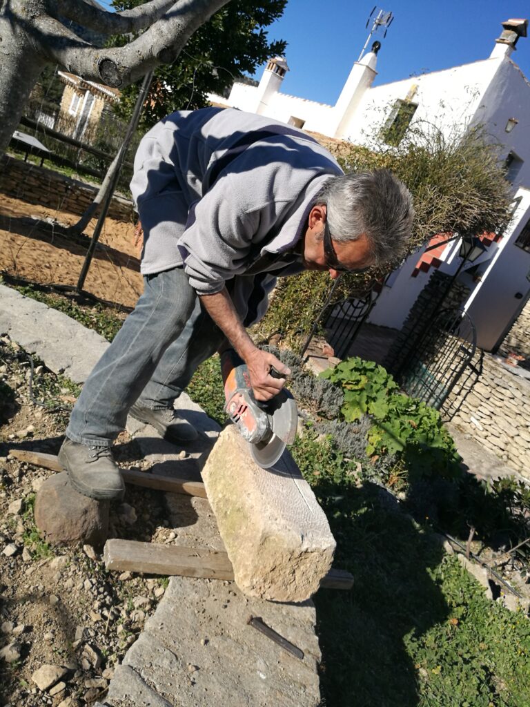 Med de nøyaktige målene til vår lille pileta og målebånd i hånden, kravlet vi rundt inntil vi endelig fant en stein som kunne gjøre nytten. Den ble halt og dratt og rullet til Juans Jeep, og jeg tok selvfølgelig med noen ekstra piedras (steiner) på lasset, da jeg finner dem uimotståelige. Vel tilbake på Juans finca begynte den egentlige jobben. Og hvis man ikke har kuttet og meislet i stein før, vet man ikke hva man begir seg ut på!