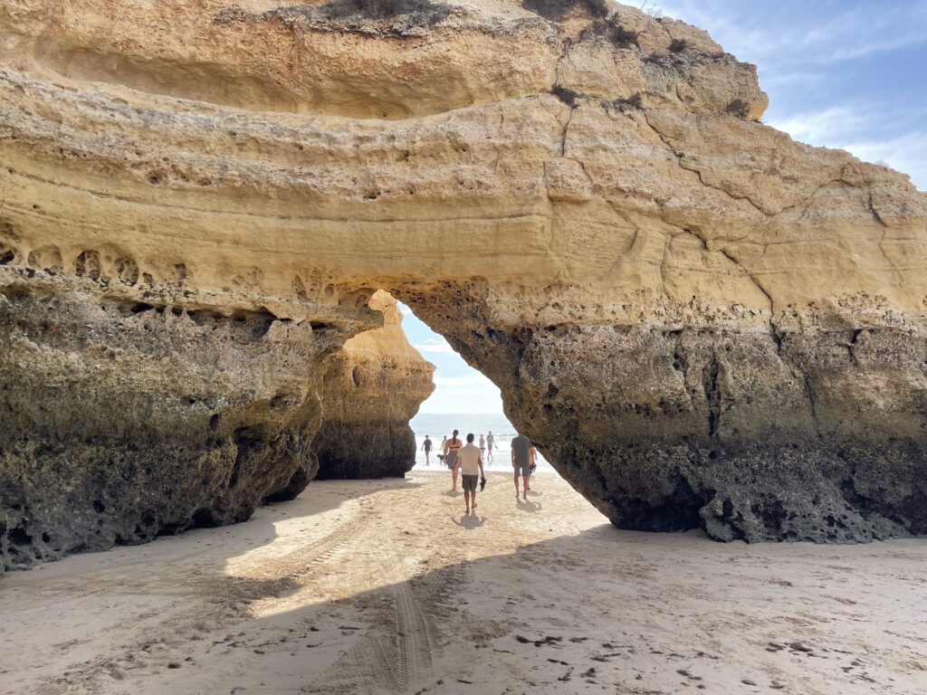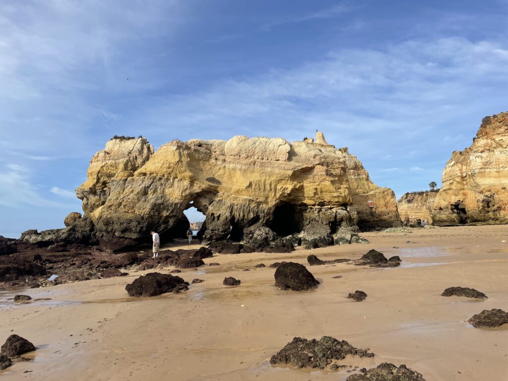 Portimão er havnen som forsyner de portugisiske øyene Madeira, Porto Santo og Azorene i Atlanterhavet med varer. Hvis du skal seile til disse øyene i stedet for å fly, må du ta båt fra Portimão. Ellers er byen mest kjent for klippestranden sør for sentrum. Vi gikk en tur dit og var fulle av beundring.I dag er sandstranden veldig bred, men det var den ikke på 1960-tallet, da turistnæringen begynte. Ved å bygge lange brygger ved utløpet av Arade-elven, har en bred sandbanke blitt liggende, slik at stranden i dag fremstår som meget attraktiv med sine mange vakre klipper og gyllen sand.