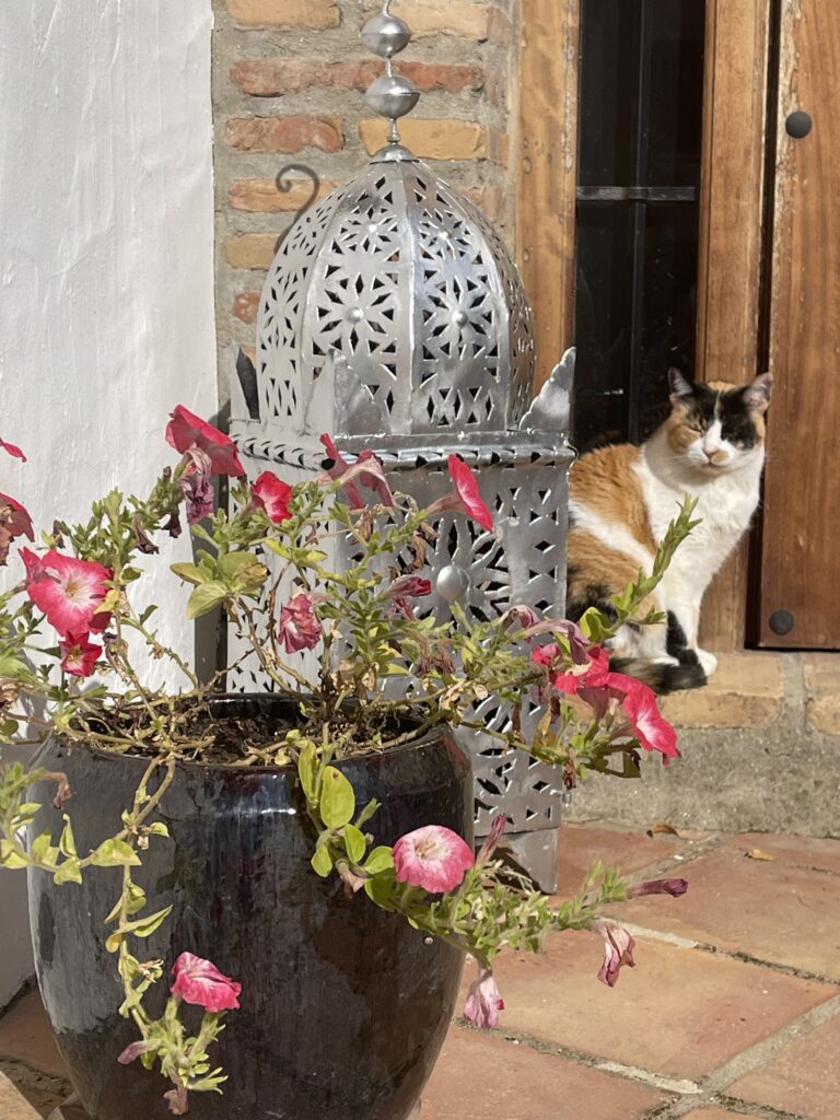 Takket være Google Earth, finner vi lett frem til villaen hvor Marianne venter på oss på gårdsplassen. Akkurat denne dagen venter de også på at noen skal levere et lass med økologisk gjødsel til deres nye grønnsakshage. Før vi setter oss ned, får vi en omvisning i det fabelaktige huset hvor hvert rom og hjørne ser ut som en side i Home and Garden. Vertskapet som begge er født og oppvokst i Oslo, tilbyr urtete fra egen produksjon, og siden dagen er mild og vakker, setter vi oss ute. Omringet av kvitrende fuglesang og duften av vill rosmarin får vi høre deres andalusiske eventyr.