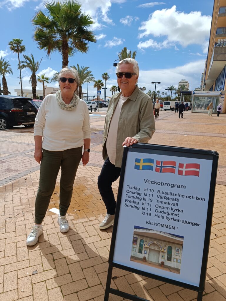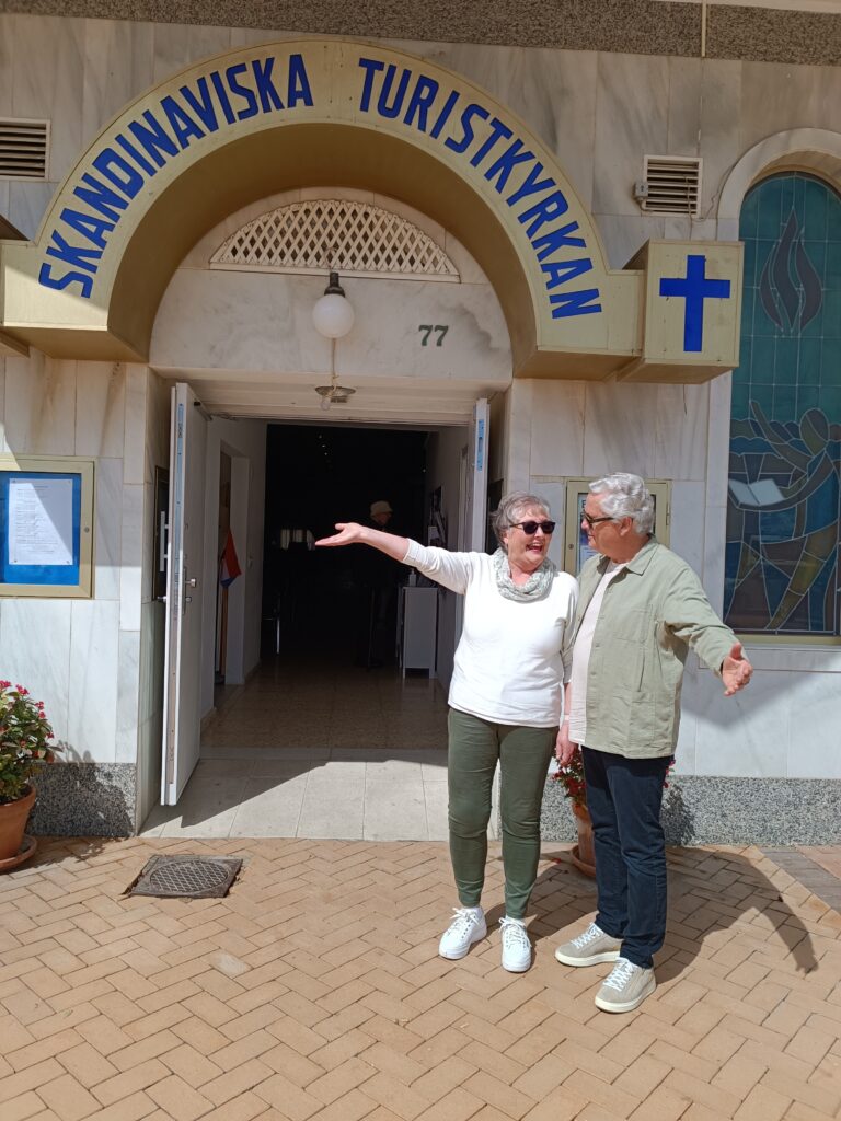 Kjell: Nei, det vi vi ikke si. Kirkene på Costa del Sol dekker jo litt forskjellige behov og har ulike mennesker med forskjellig bakgrunn. For noen er det naturlig å gå til sjømannskirka i Calahonda eller til den Svenska Kyrkan oppi gata her, og for andre er det mer naturlig å komme til oss. Men vi opplever ikke det som konkurranse, men som et godt fellesskap.