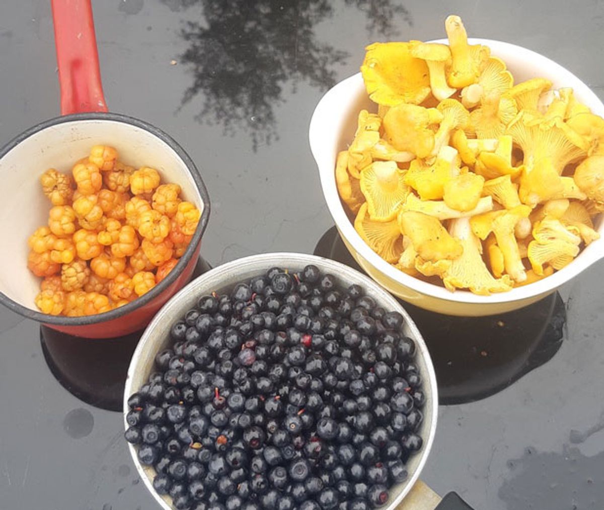 Dette bildet av naturens gaver kom på mail fra Bodø og jeg sender bildet videre til leserne av Det Norske Magasinet. I Norge meldes det om mye blåbær og sopp, i både nord og syd. Når råvarene er så friske og fristende, er det enkelt å lage noe godt ut av dem.