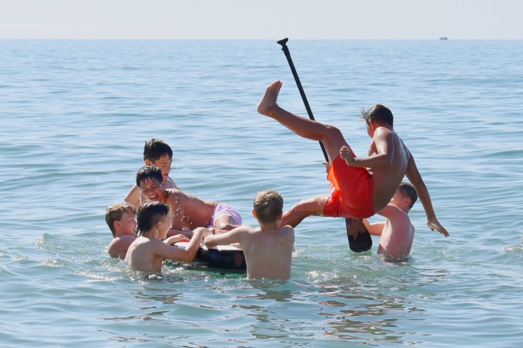 Etter den organiserte leken blir det sandvolleyball, kubb eller stikkball. Den som heller vil lage sandslott får lov til det, og alle som vil kan bade. Badingen foregår til oppsatte tider med badevakter på land og ute i vannet.