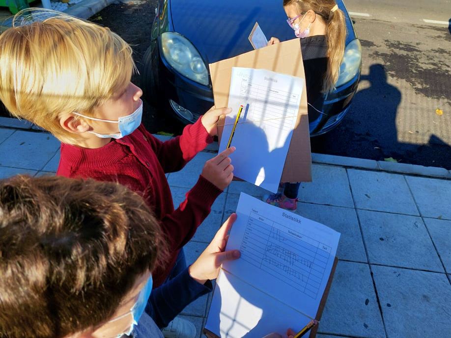 -Før jul tok vi en runde rundt skolen for å telle hvor mange biler av ulike farger vi fant. Disse førte vi inn i tabeller som vi senere laget søylediagram av på papir, som vi fargela. Søylene viste for eksempel hvor mange svarte og hvor mange blå biler vi fant. I tillegg til å lage dette på papir, benyttet vi anledningen til å presentere hvordan man enkelt kan overføre data om bilene til digitale søylediagram.