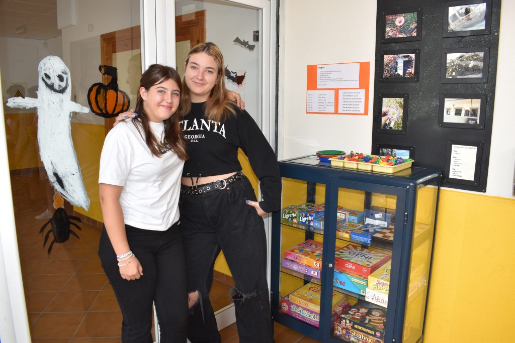 Leah og Rania har første brettspillvakt. De skal hjelpe spillelystne elever i gang og minne om at alle tar vare på spillene.