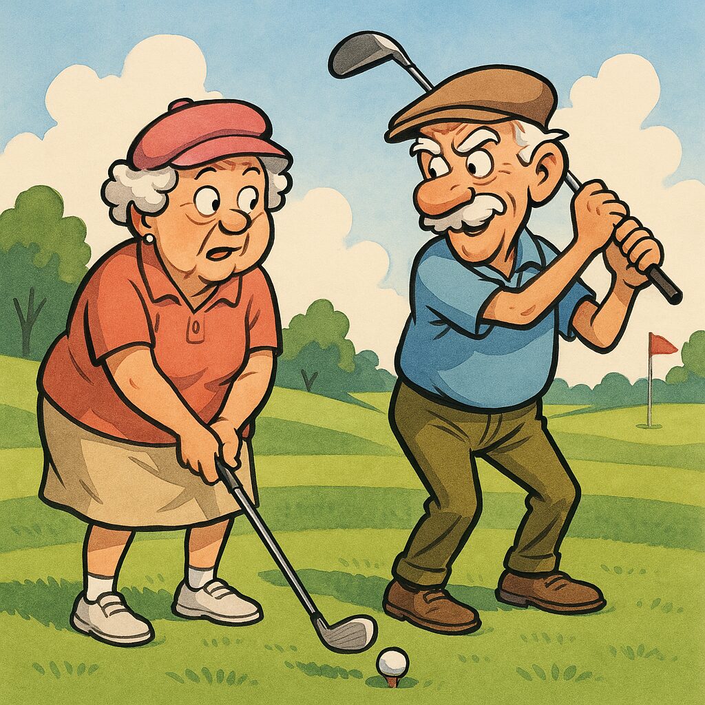 Et koselig eldre ektepar skulle slå ut fra tee 1.