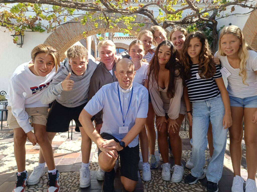 Det er en søndag i slutten av september. Solen skinner, luften dufter lett av vafler, og det er livlig aktivitet på El Campanario. Som alltid finnes menighetens trofaste som stiller opp hver søndag, men det er også barn som løper rundt på patioen, unge som står ved inngangen til kirkerommet og gir ut salmebøker, stolte foreldre som skal bivåne deres konfirmanters første gudstjeneste og en shorts-kledd prest, Espen Holm (37) som stikker raskt inn for å ta på seg den hvite albaen.