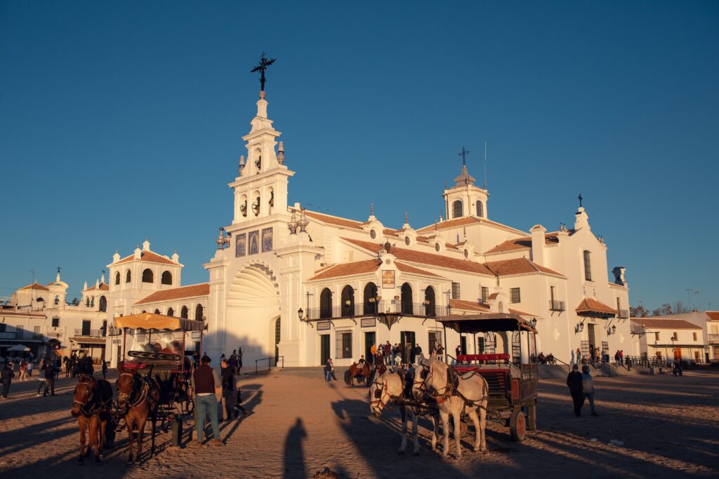 Romería de El Rocío er en pilegrimsreise der over én million mennesker valfarter til landsbyen El Rocío i Huelva hvert år for å se jomfruen Virgen del Rocío. Det er et elegant syn, hvor mange deltakere reiser i hestevogner ikledd i tradisjonelle kostymer. Arrangementet ble etter sigende kalt Romería fordi pilegrimsreisene tradisjonelt førte til Roma. Romería de El Rocío arrangeres i år 22. og 25. mai.