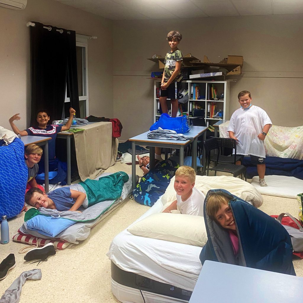 Det er vanlig, nesten som en tradisjon, at elevene i 5. og 6. trinn får overnatte på skolen. Det er få ting som er like stas! Kvelden ble veldig bra, til tross for litt regn og rykter om at skolen har fantasmas (spøkelser).