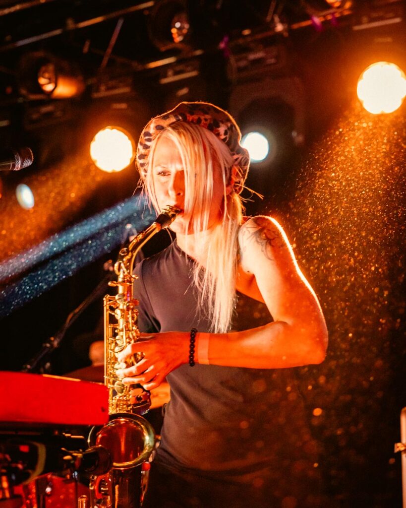 I tillegg til å administrere plateselskapet deres, synger og spiller denne livlige Montrealeren keyboard, fløyte, klarinett, trompet og saksofon i bandet.