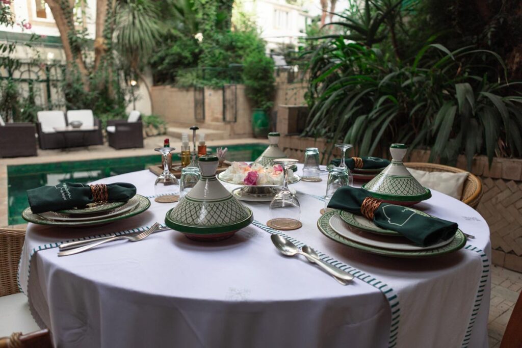 Bare noen få andre gjester spiser sammen med oss i stuen denne kvelden. Det er ingen meny som sådan, siden Ilham, den smilende kokken, går på markedet, kjøper det som er ferskt tilgjengelig og serverer en tajin-fest uten like. Og takket være de nye eierne er spillelisten ‘chill’ og det er vin å få, noe som ikke er gitt her til lands.